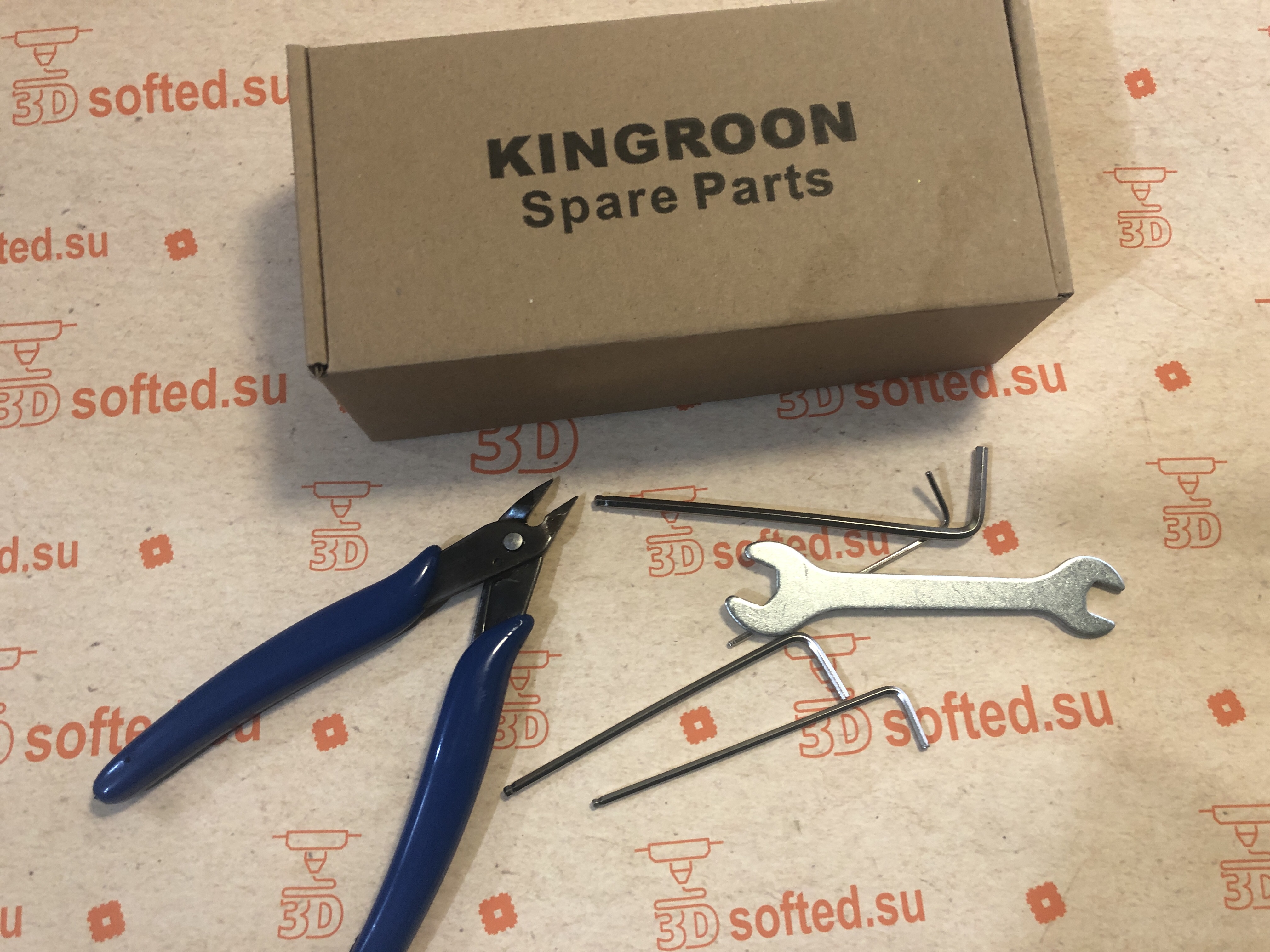 Допы скудные и скучные. Нету: шпателя, пинцета, термоблока, нагревательного элемента. Положили запасной термистор, пластика моток, кусачки, 4 сопла латунных. Короткий USB провод и негодный держатель пластика… инструкции нет.